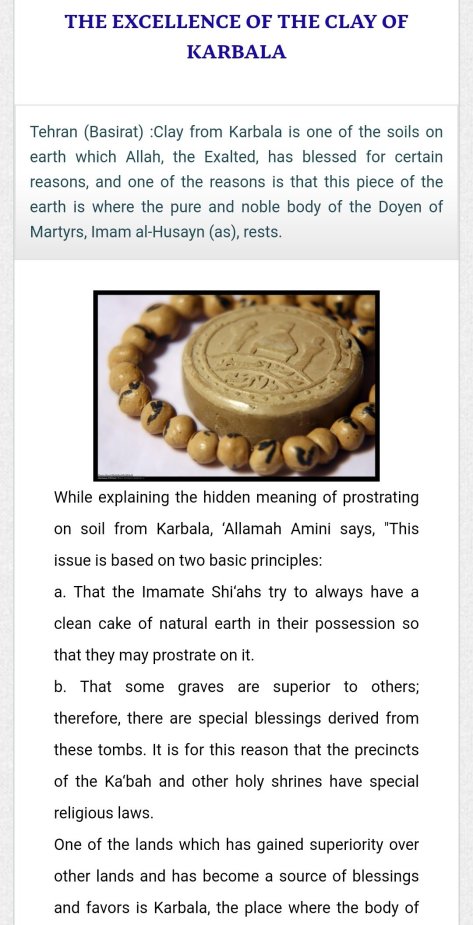 The Shias should contemplate that had it been that this soil of Karbala was so virtues, then how could Allah deprive the Ummah before the martyrdom of al-Husayn (r), starting with the Messenger (s) himself using this sacred and virtues soil for prostration?