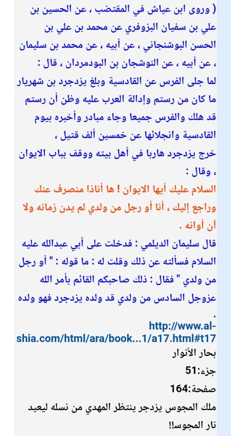 #المهدي عند #الشيعة #الرافضة #الإمامية من نسل ملك الفرس يزدجرد المجوسي الذي هلك في عهد سيدنا الفاروق عمر بعد المعركة #القادسية المباركة.