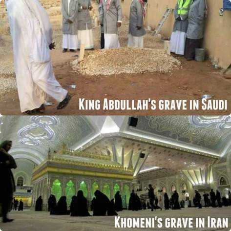 Modest Islamic graves VS Khomeini’s Sasanian-Zoroastrian (Majusi) style super mausoleum and shrine:
