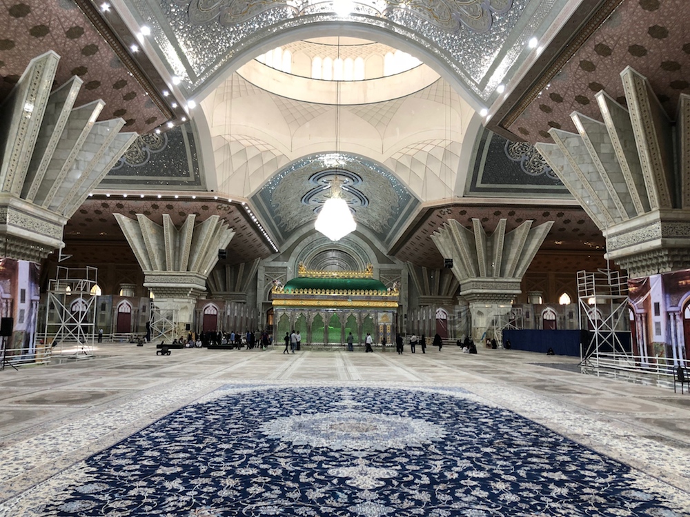 During my visit in 2003 the complex was already huge. Visitors flocked around the huge rectangular tomb (Shia and Sufi shrines always resemble a Ka’bah like structure) in the centre of the mausoleum. People unwrapped green silk threads (dakhil) and tied them around the crosses of the lattice frame (common Shia practices) for the sake of Tabarruk (seeking blessings). They kissed the frame and performed Tawaf-like rituals (circumambulating) around the shrine that is bigger in size than the shrines in Karbala, Najaf, and Mashhad.