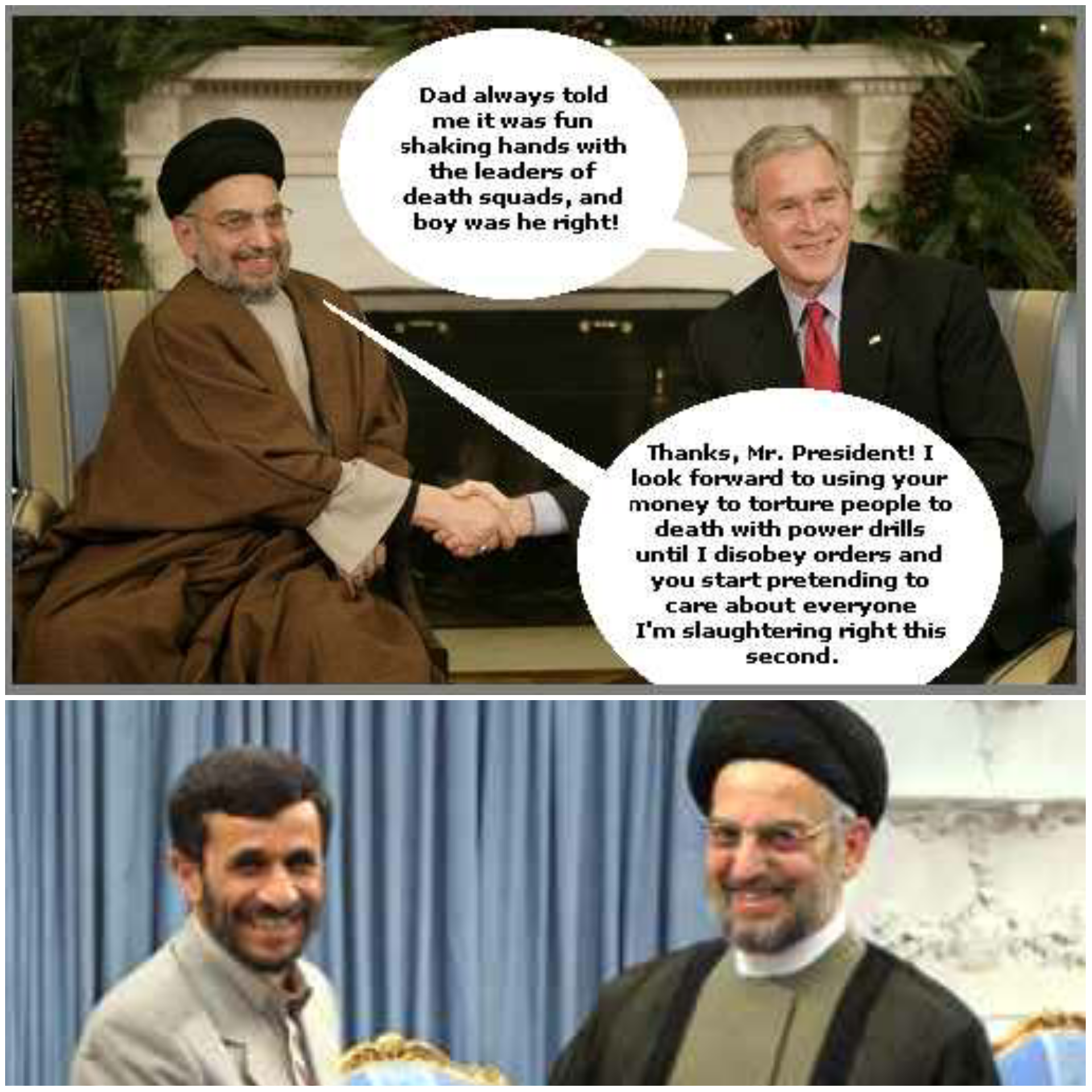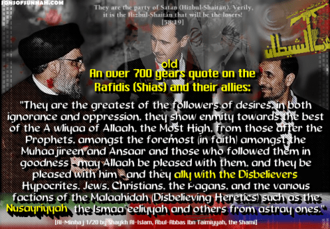 It is sad that a picture speaks more than thousand words, imagine how many words these picture speak. Treachery and backstabbing was and will always be a hallmark of Rafidism and its leaders, no matter how loud they bark anti-American/Israel slogans (too fool the gullible and easily impressed).