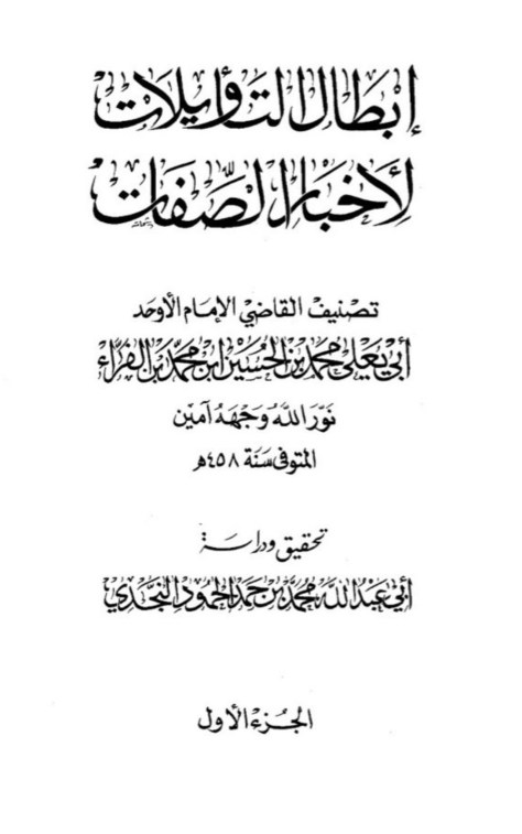 Reference: Ibtal al-Ta`wilat by Abu Ya’la Muhammad ibn al-Husayn Ibn al-Farra` (458 A.H ), commonly known as al-Qadi Abu Ya’la or simply as Ibn al-Farra` the Hanbali
