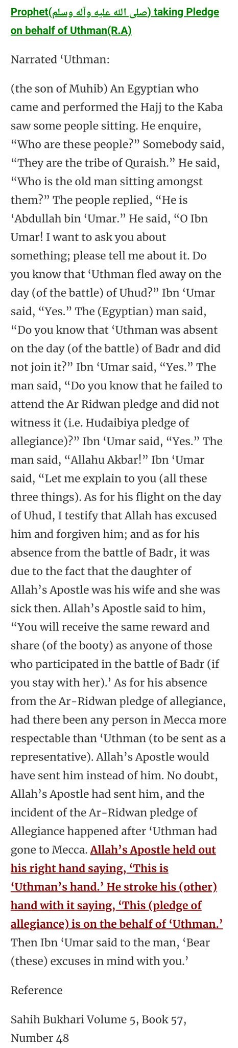 The Prophet (ﷺ) took the Ridhwan pledge of allegiance on behalf of his beloved companion ‘Uthman (may Allah be pleased with him):