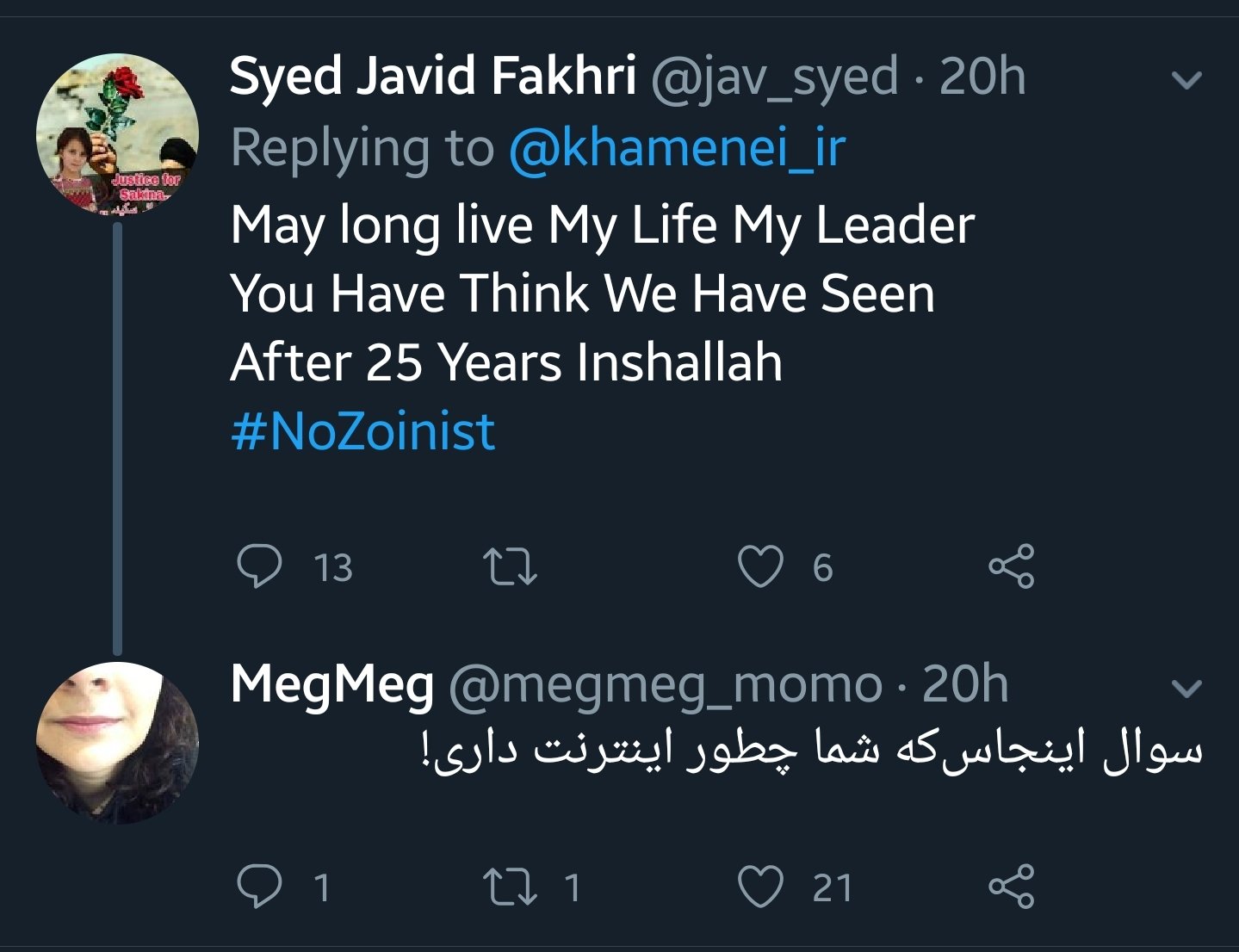 However, many Iranians use VPN to access these social media platforms and millions of Iranians live outside of Iran. Despite that, you barely will find any Iranians supporting Khamenei and the regime online. Just have a look at their social media accounts. The vast majority of comments in support of Khamenei are by Iraqi, Lebanese, and Subcontinent Shiites.