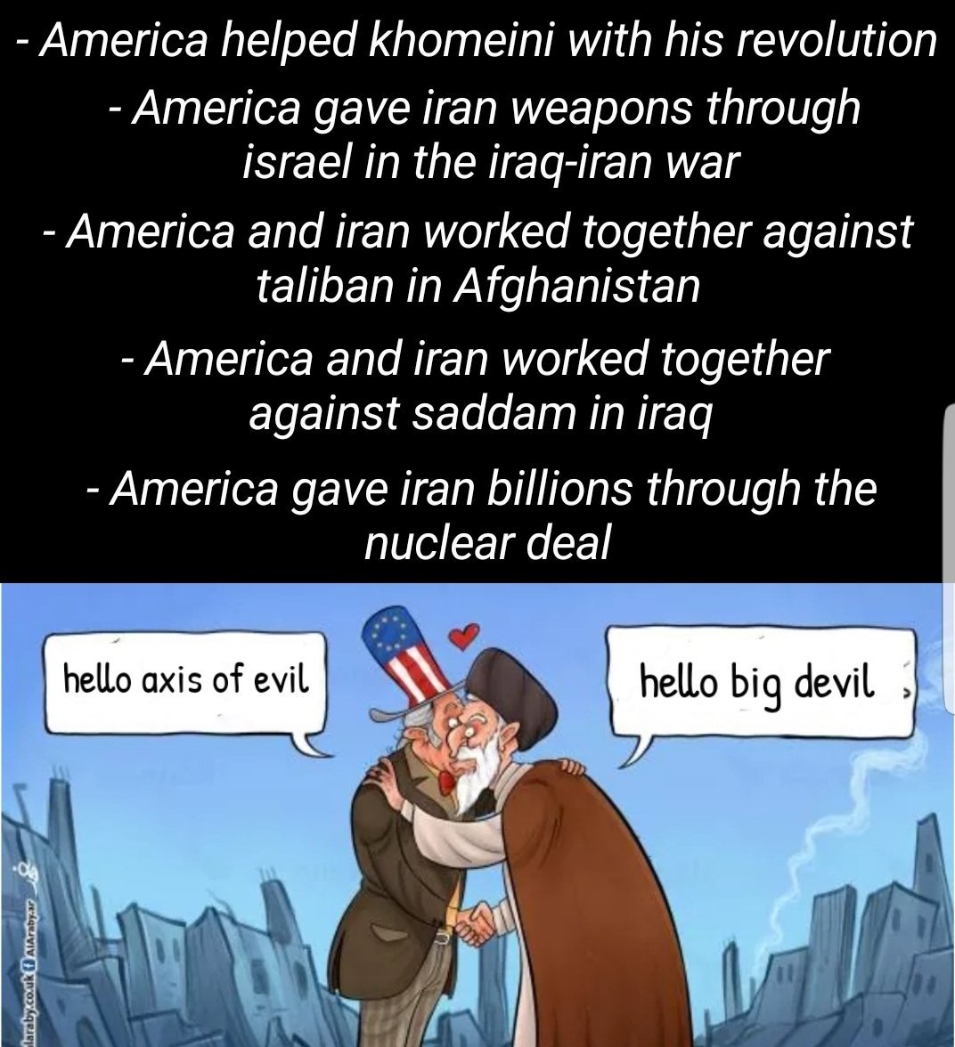 All the Anti-American even Anti-Saudi slogans by Iran are all due to the current feud between them. Iran is opportunistic and would sit with the ‘Nasibi Vahhabis’ the moment it suits them. The rhetorics and empty slogans are for their gullible followers.