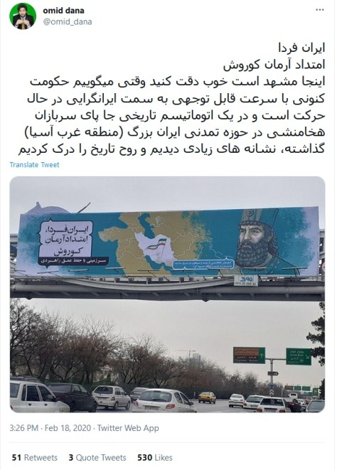 Omid Dana – like other rabid ultra-nationalists – openly advocates for the eradication of certain languages such as Arabic (in Ahwaz) and Turkish (Iranian Azerbaijan) with the (typical) fallacious Persian supremacist argument that Iranian Arabs are not Arabs but merely Arabic speakers, and that Iranian Turks are not Turks but … you get the gist. Old and pathetic Persian fascism (imagine telling a Persian that he’s not a Persian, he’s a mere migrant from Siberia or India who speaks Persian …).