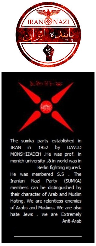 All Iranian ultra-nationalist parties and movements are rooted in the ideology of the now-extinct National Socialist Workers Party of Iran, better known by its abbreviation SUMKA (Persian: سومکا) and are still operating to this very day in ‘the Islamic Republic of Iran’ where they advocate Nazism. As of 2010, they are reported to be a small yet slowly increasing minority of Iranian youths who are without exception born Shiites and converts to Zoroastrianism. The Nazi Persians prefer Shi’ism all day and every day over mainstream and classical Islam i.e. non-Persianised Islam that is Ahlus-Sunnah (Sunnism).