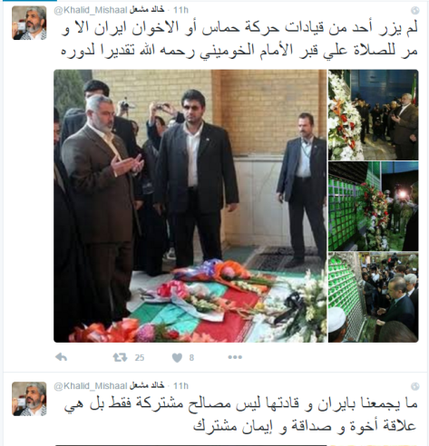 Hamas suddenly found itself without a patron. In retribution for its betrayal, Mashaal was thrown out of Damascus and he moved Hamas’ political bureau to Qatar. Back to square one it was, so Hamas started begging at Iran’s door again. Iran, which is known for its exploitation of the Palestinian agenda, pardoned its rebellious token Sunni ally (that Iran needs to portray itself as a well-wisher in the Sunni world whilst being busy arming Shia militias from Iraq to Yemen), however, it punished it in its own way, by actively starting to spread Shi’ism in Gaza. Hamas shifting allegiances come with a price, and it is now back doing what it was used to do i.e. degrading himself in the presence of one of the principal enemies of Islam, the Rafidah.