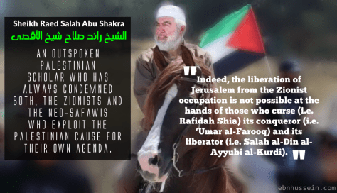‘Indeed, the liberation of Jerusalem from the Zionist occupation is not possible at the hands of those who curse (i.e. Rafidah Shia) its conqueror (i.e. ‘Umar al-Farooq) and its liberator (i.e. Salah al-Din al-Ayyubi al-Kurdi).’ – Shaykh Raed Salah al-Falastini
