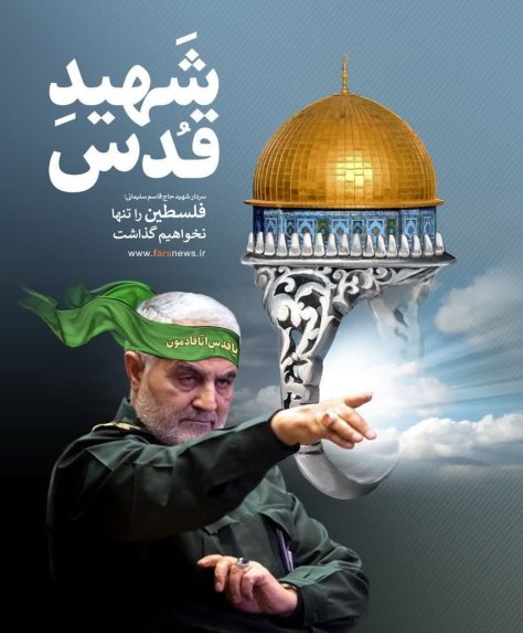 Qassem Kotlet Soleimani was paraded as the hero of the Islamic and Palestinian cause. Al-Quds (Jerusalem) would be liberated by him and Iran, he was basically on his way. Well, at least kind of, or in Khomeini’s words: