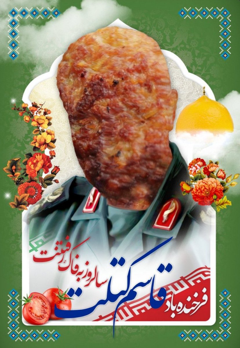 Qassem Soleimani, aide-de-camp to Rafidi dictator Khamenei, lifesaver of secular Nusayri-Rafidi pagan Bashar la-Assad, butcher of Syrian children, has been turned into a cringe idol not long after he was turned into a Persian kabab/cutlet (kotlet) by the foolish WTF (Wilayatul-Faqih) regime.