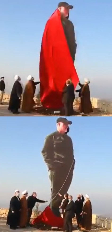 And the stooges of the Iranian regime (including the notoriously detested ‘Sunni Mufti of Iraq’) in Iraq have of course also started building statues of Kotlet Soleimani (and more ‘Ayatollahs’)…