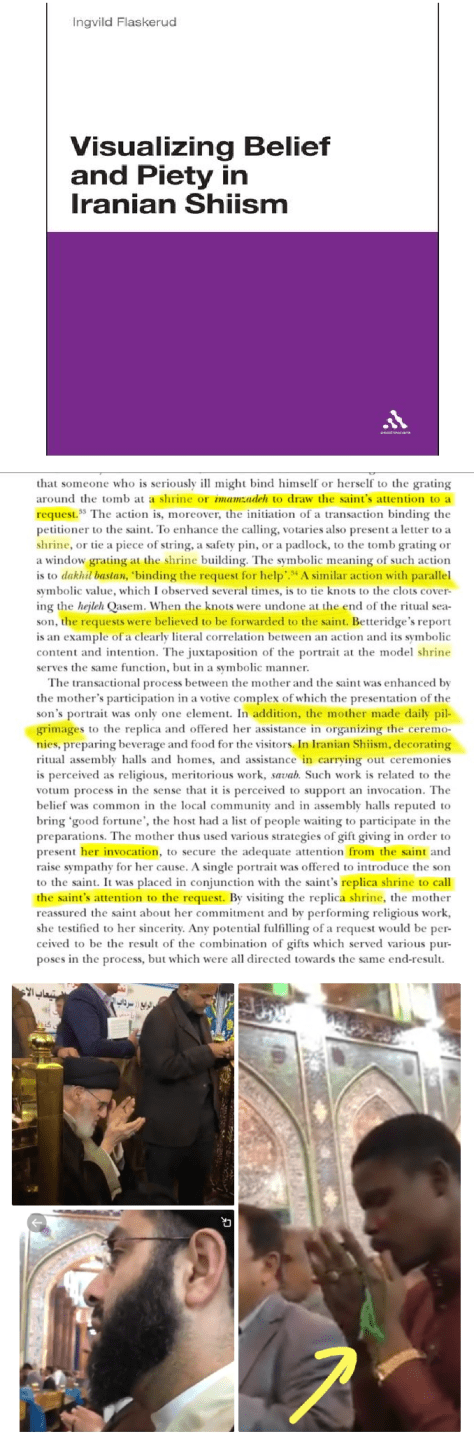 Iranian Neo-Safawi missionaries take full advantage of impoverished parts of Africa. Here you can see them teaching the gullible to seek blessings from pieces of cloth that were rubbed at shrines in Iran.