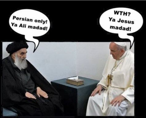 Of course, the Rawafid (not just some non-representative layman or local cleric, but the likes of Ali Sistani, the most influential Shia ‘Ayatollah’ on this earth) have the exact similar belief, of course, they do, after all: ملة الكفر واحدة (the nation of Kufr is one nation). This is why the Rawafid (despite all their differences) always support them (like in Egypt) and parade them as ‘true Sunnis’ against the ‘Wahhabis’ (those who’ve committed the ‘crime’ to call upon Allah alone).
