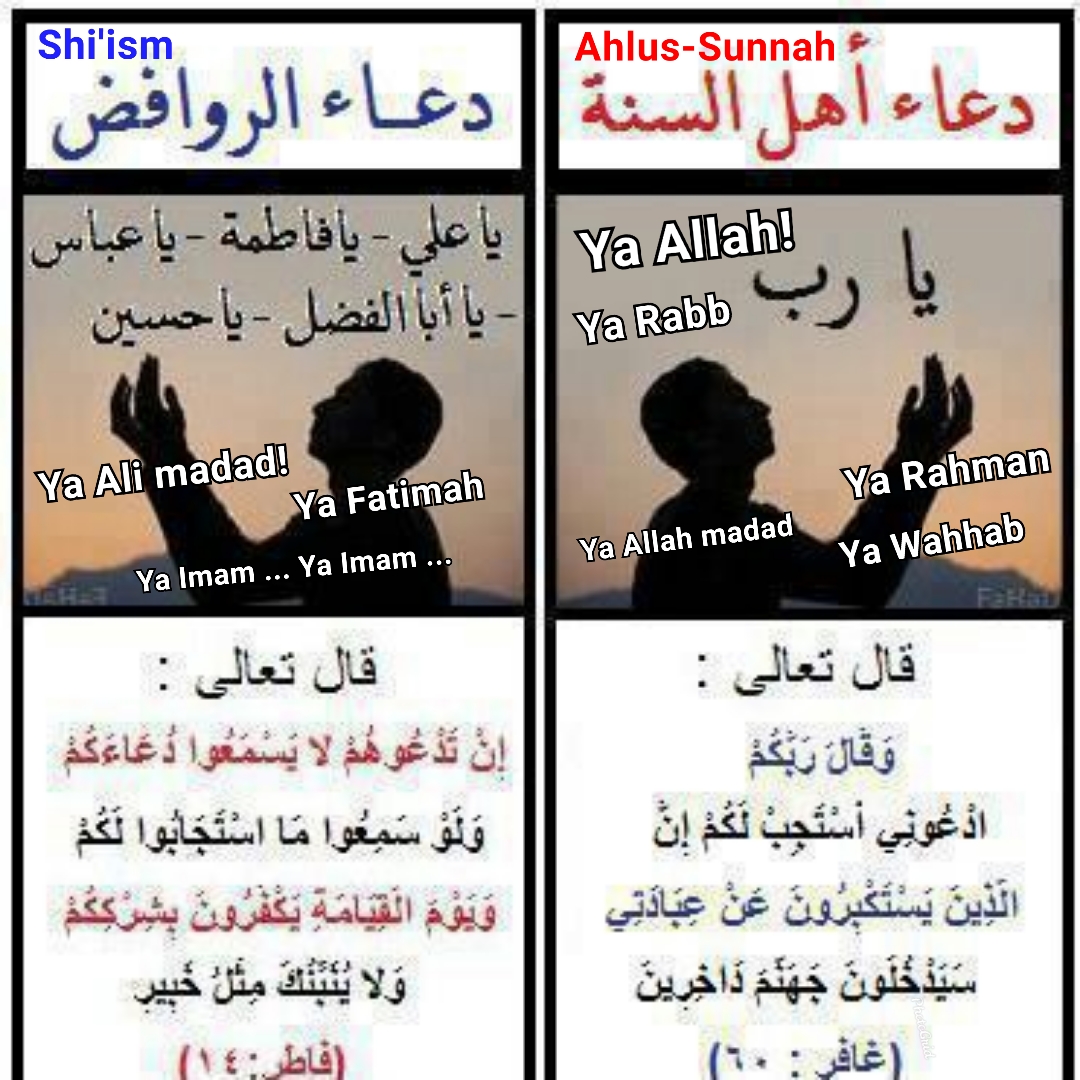 Nobody casually ‘asks’ his favourite saint for madad (help), this is why you can observe polytheists such as Rawafidh literally raising their hands (like how Muslims invoke Allah in du’a) and praying to their saints (imams) like Catholics pray to their saints: