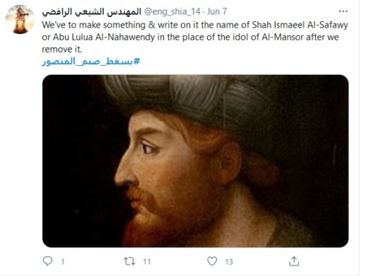 This Mushrik (according to whom Catholic-like icons of the Ahlul-Bayt are fine!) is now trying to act as an idol-breaker. Of course, his concern is not statues, after all, he himself is an Imam-centric idolater. His concern is a specific statue, the statue of al-Mansur al-Abbasi in Baghdad. The statue is currently protected by Iraqi security forces.