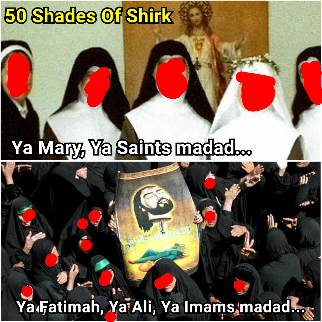 - The paganism of invoking/praying to saints (‘ya ‘Ali madad instead of ‘Ya Jesus’ and ‘Ya Hubal madad’).