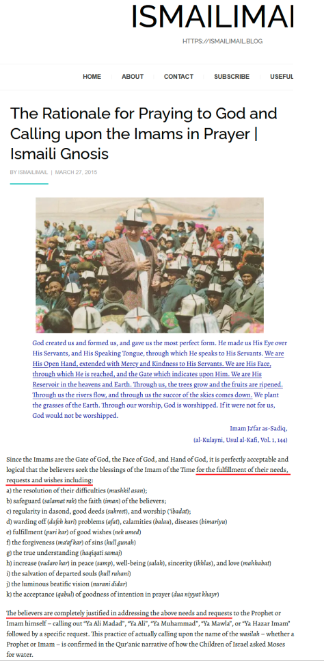 The Isma’ilis don’t fail to stress how Sufi Tariqahs chant such Shirk as well.