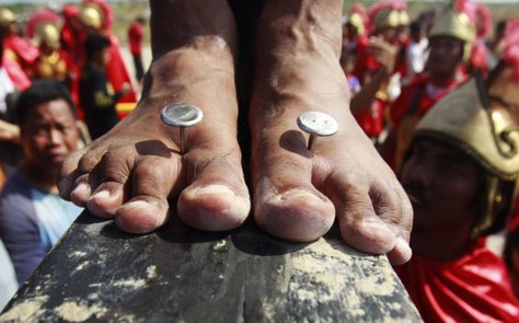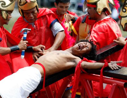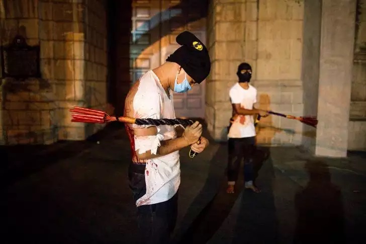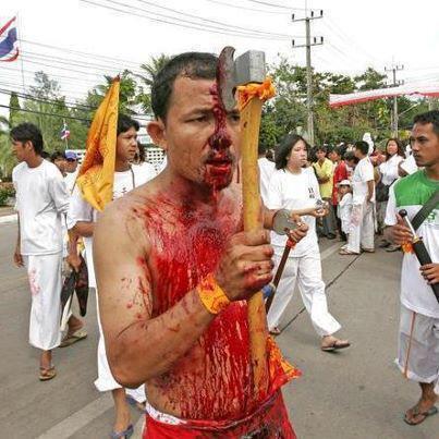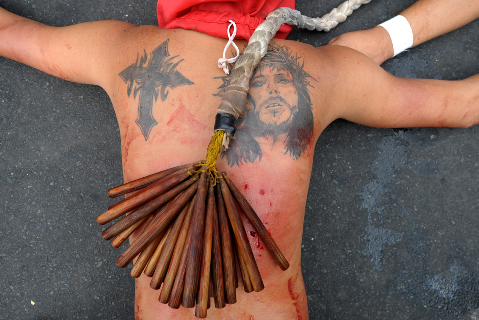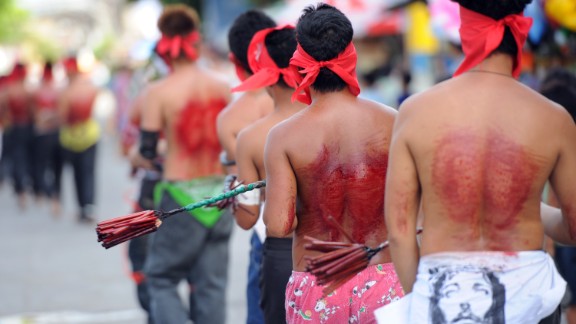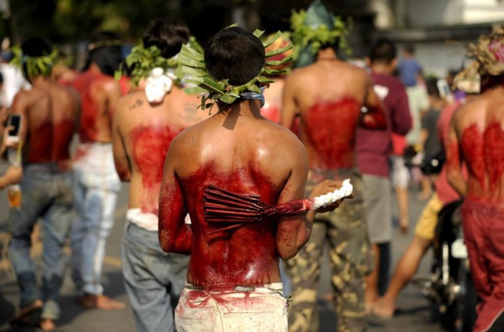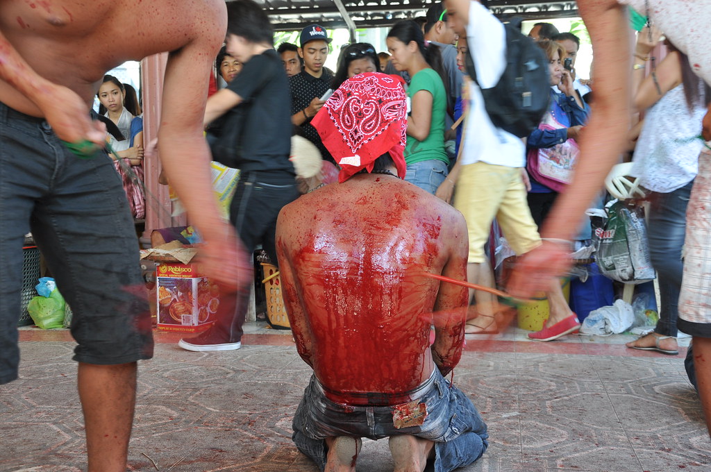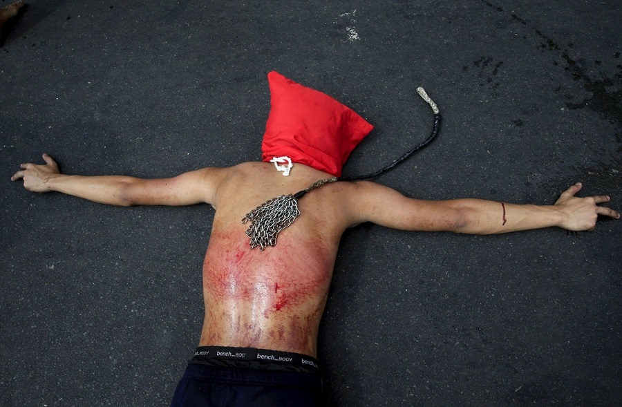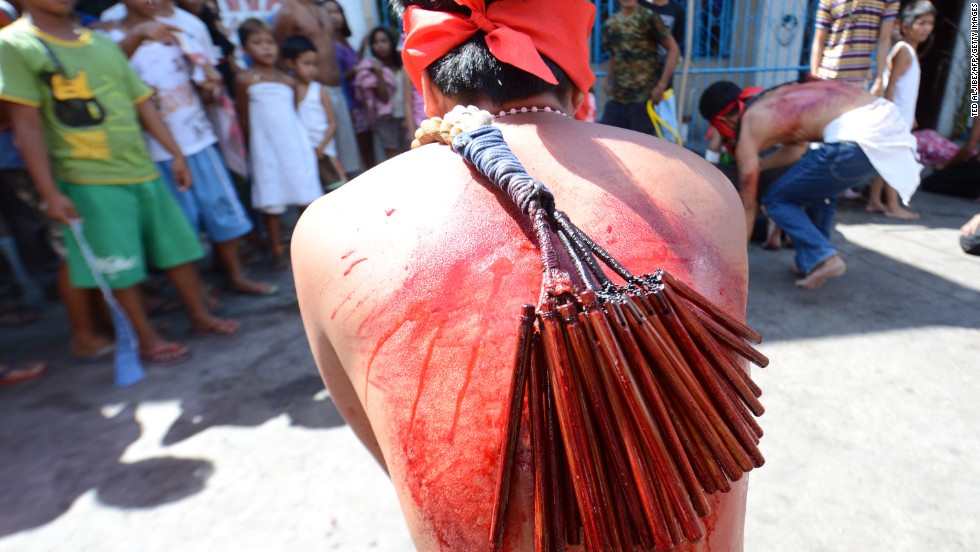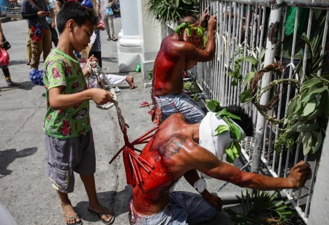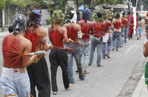 Each year, some streets of the Philipines are speckled with blood. On every Good Friday, The flagellants, who often cover their faces with red or black cloth, beat their bodies with chains and whips in remembrance of the suffering of Jesus Christ (peace be upon him).