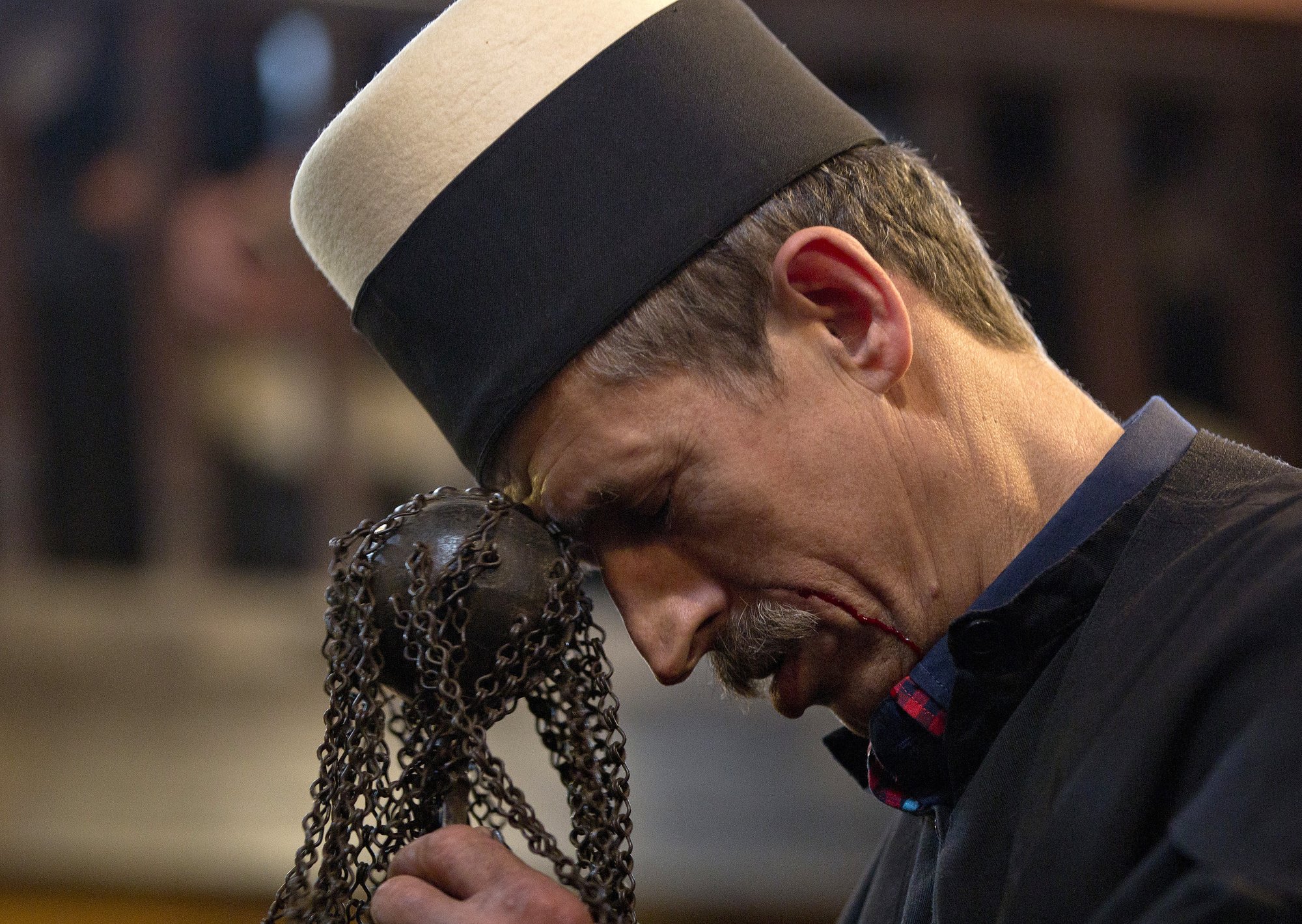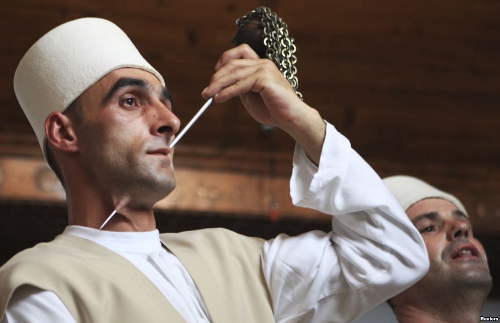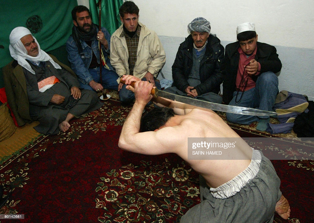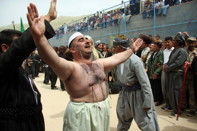 Each year in spring in the Kurdistan regions of Iraq and Iran, thousands of followers of the Qadiriyyah Sufi sect gather for a traditional religious ceremony and pierce their tongues and cut themselves with swords.