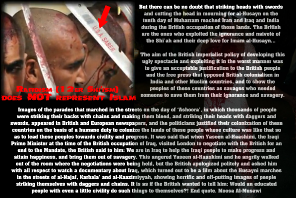 The Safavids fostered the mourning rituals of Ashura by adopting the heresies of the Christians that are alien to Islam, yet have become an integral part (whether in bloody or non-bloody form) of Twelver Shia religious culture.