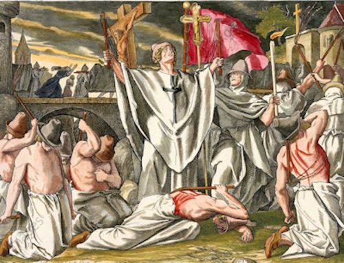 Some Christians have made a great show of self-abuse. The Flagellants were a famous Catholic group that in the 13th century began marching around Europe, staging processions that included whipping themselves. The Pope banned the movement in 1261, and later popes cracked down on them as heretics. In the early 15th century, the Spanish Inquisition burned many Flagellants at the stake.