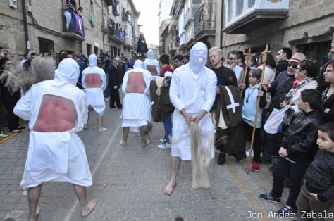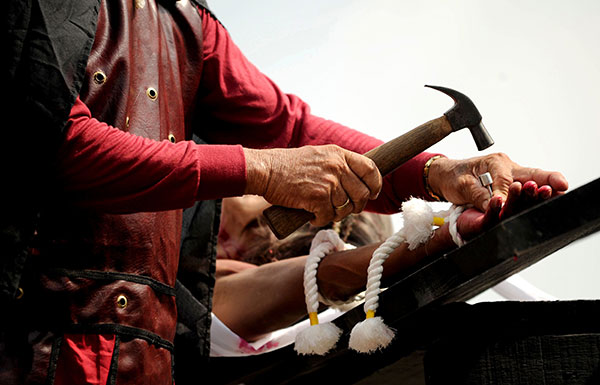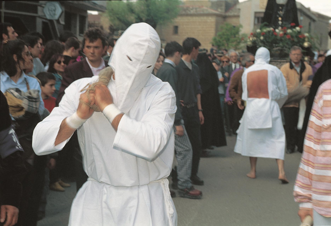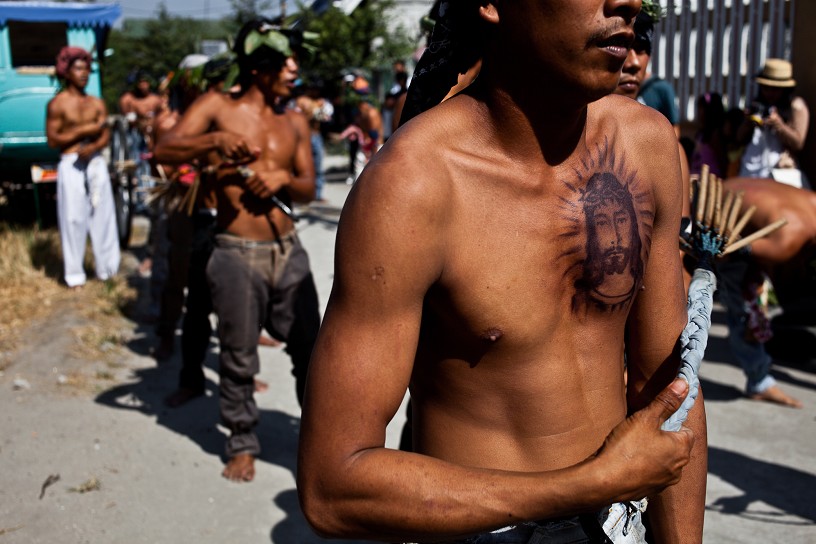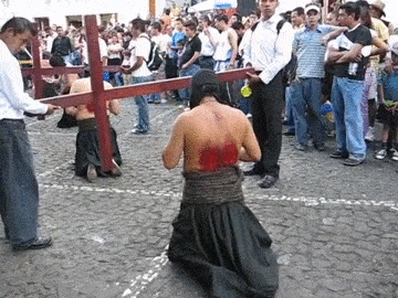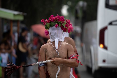 Penitents are also willingly flogged by others and crucified in imitation of Jesus Christ’s suffering and death, while related practices include carrying wooden crosses, crawling on rough pavement, and other disturbing rituals.