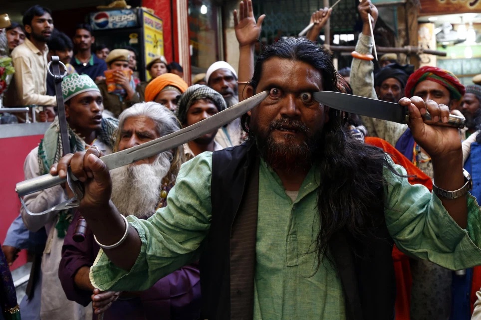 The Sufis can be seen performing eye-popping rituals, self-flagellation, and pulling metal wires through their cheeks. Men are believed to perform the grisly acts of self-torture as acts of devotion to the saint. Indian Eunuchs dance at the procession and are an integral part of the festival.
