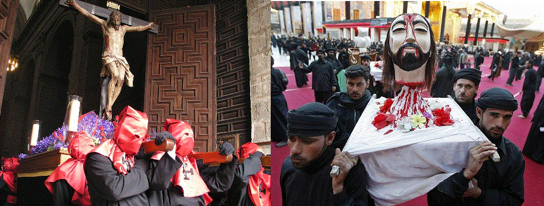 The passion of Christ as the Church calls it has been turned into an annual show of bizarre rituals (self-flagellation, theatrical play and re-enactments, exactly like in Shi’ism) which have evolved over centuries.