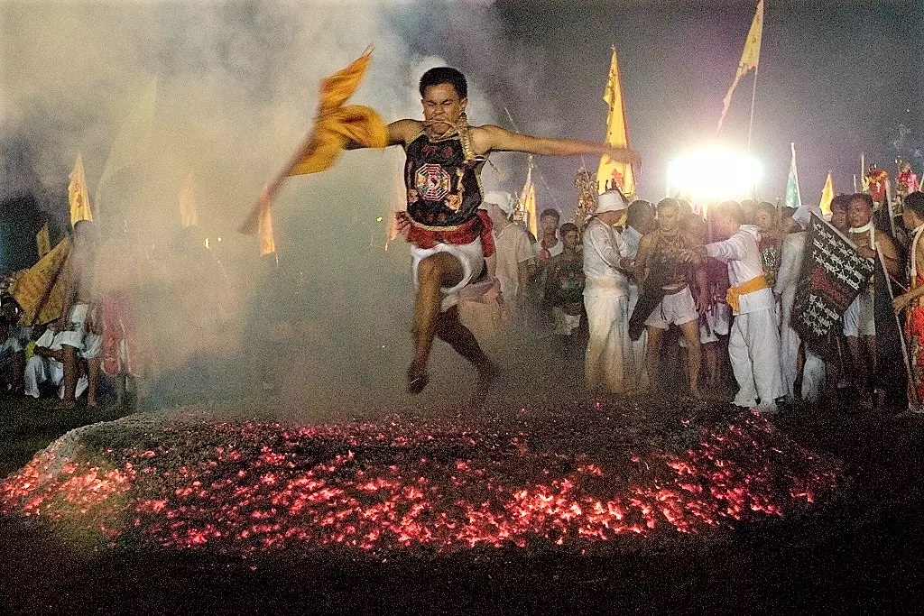 The history behind attempting to do such strange activity is that goddess Kali killed the Demon Darika and after that, she was extremely thirsty and was not able to quench her thirst, as a result, Lord Vishnu sent her Garuda which is an eagle to quench the thirst of Goddess Kali but she was not able to quench her thirst until she drank the bleeding blood of Garuda. Hence in order to pray, people hang themselves from hooks, the hooks are pierced unto the back of their skin then these are taken out for the procession in the vehicles. They also dress like Garuda and perform different dance forms.