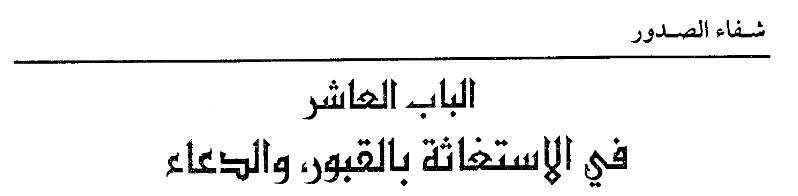 Shifa al-Sudur fi al-Ziyarah al-Mashahid wa al-Qubur ( شفاء الصدور في زيارة المشاهد والقبور ), which can be translated to ‘The Healing Of The Chests Concerning The Visitation Of The Shrines And Graves’, is a treatise written Mar’i Ibn Yusuf al-Karmi al-Hanbali in which he clarifies matters related to grave visitation as the name of the book reveals.