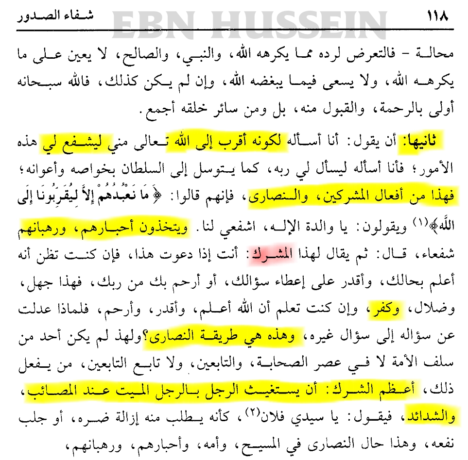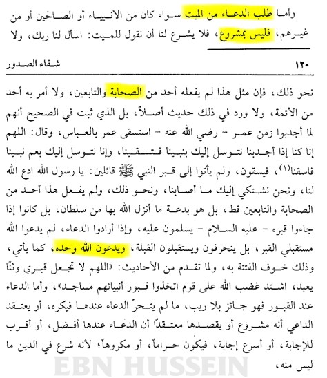 Here are some screenshots from relevant sections of his book (a dedicated one of the longest chapters of one of his most acclaimed books in refutation of grave veneration and the heretical practice of invoking the saints for the fulfillment of needs and in times of need):