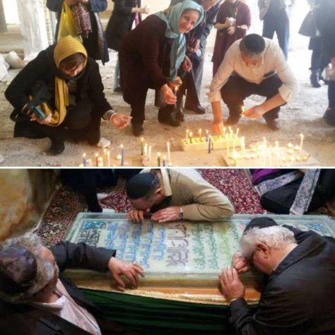 Iranian Jews venerating the tombstone of Prophet Daniel in Sus, Iran. Kissing of tombstones is a common Jewish and Shi’ite practiced shunned by Islam.