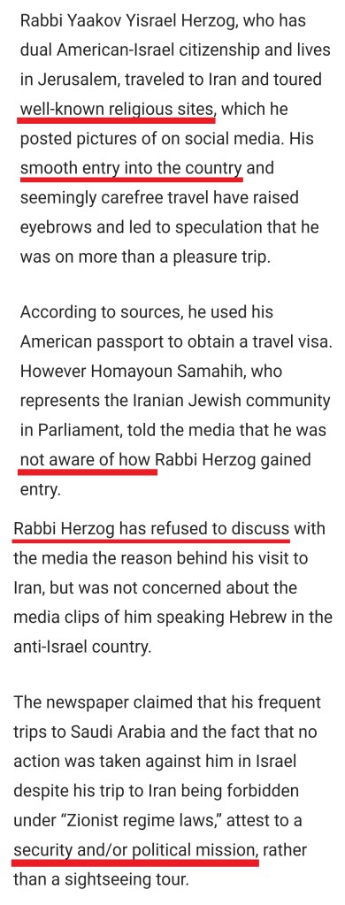 Don’t fall for political rhetorics. Don’t shill for ANY state, but have no doubt that Iran is the BIGGEST hypocrite as it is only good at chanting empty slogans. Note: The Rabbi who recently visited Iran is NOT an anti-Zionist, on the contrary…