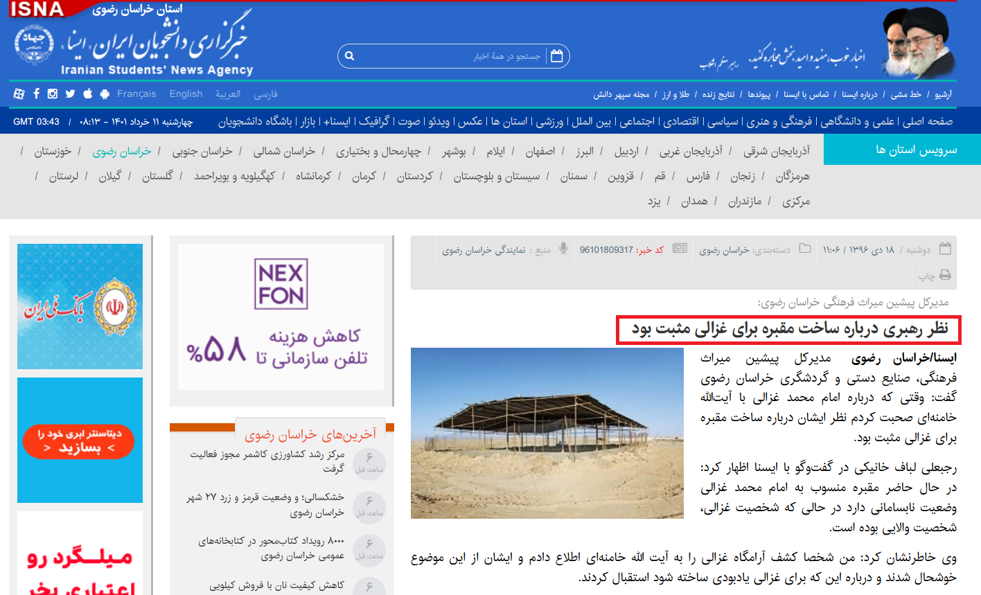 Other official sources (with ties to the Iranian regime) have even reported how Khamenei himself gave the go-ahead for the construction of a new shrine and grave at al-Ghazali’s supposed resting place.