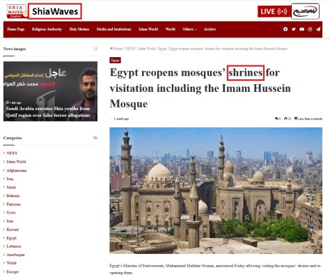 Sufis within Egypt have established a multitude of shrines associated with the Ahl al-Bayt, wherein the deplorable acts of polytheistic tomb and shrine veneration are as widespread as the infamous bastions of such practices like Qom, Najaf, and Karbala. Not surprisingly, the Iranian Rafidi Khomeinist regime has consistently provided robust backing for tomb pilgrimages to Egypt.