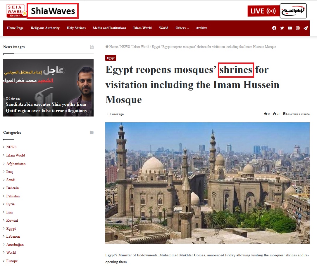 Sufis within Egypt have established a multitude of shrines associated with the Ahl al-Bayt, wherein the deplorable acts of polytheistic tomb and shrine veneration are as widespread as the infamous bastions of such practices like Qom, Najaf, and Karbala. Not surprisingly, the Iranian Rafidi Khomeinist regime has consistently provided robust backing for tomb pilgrimages to Egypt.