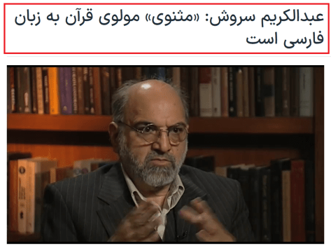 Soroush affirms that none of the poets and mystics, like Rumi, have described their own books with such lofty titles as Rumi does about his works. It was only Rumi who considered his own Masnavi to be equal to the Quran.