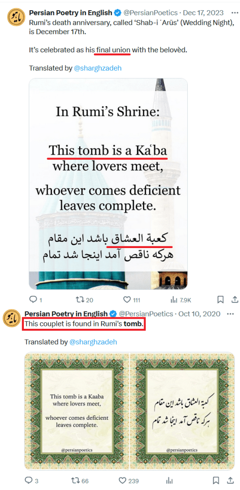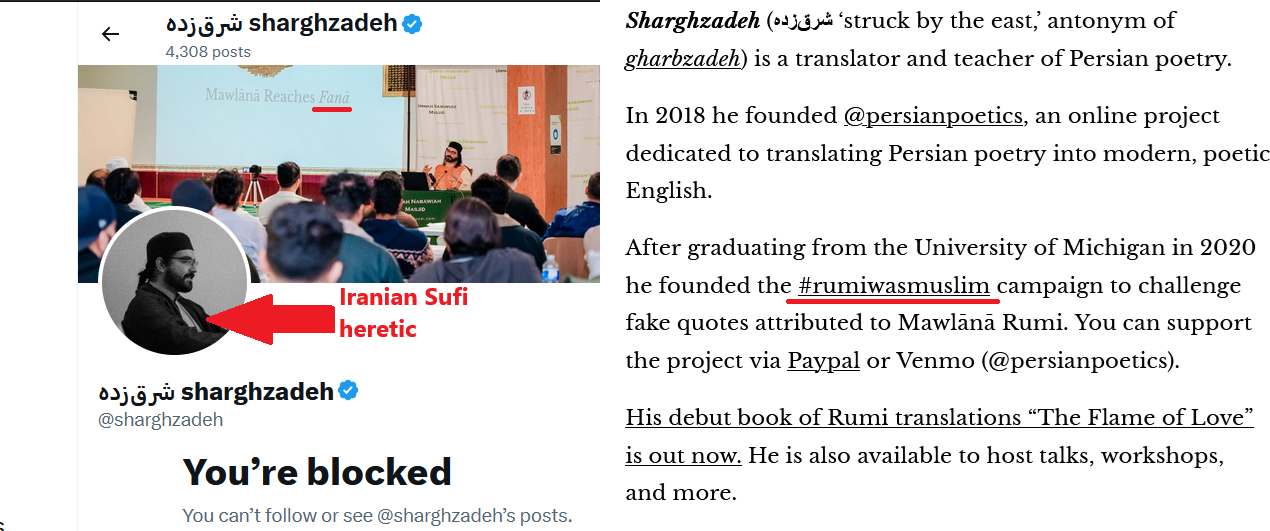 The truth is that kafir esotericists and Iranian ultra-nationalist Islam-hating Rumi devotees are both guilty of having tampered with Rumi’s work, but that doesn’t mean that his works are devoid of kufr and anomalies that are clearly rejected by Islam, as shall be proven, with the permission of Allah.
