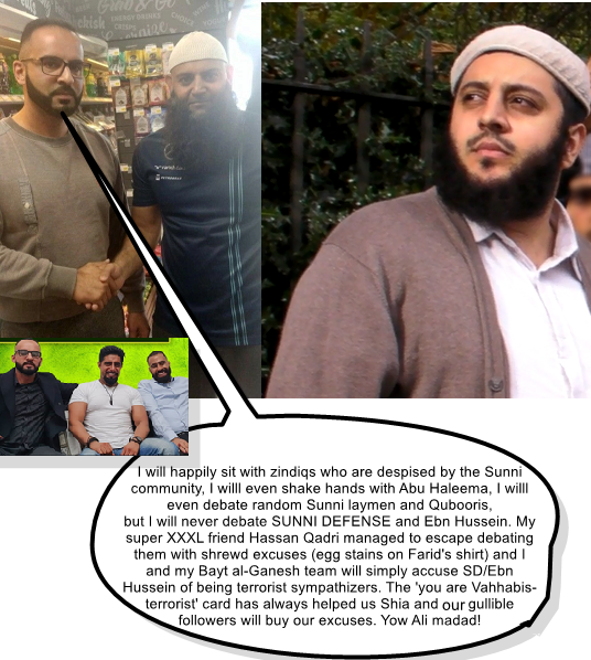 What do Rafidi extremists like ‘Bayat al-Ghadeer’ do when they are scared to debate our team, the Sunni Defense, and myself? They resort to character assassination.